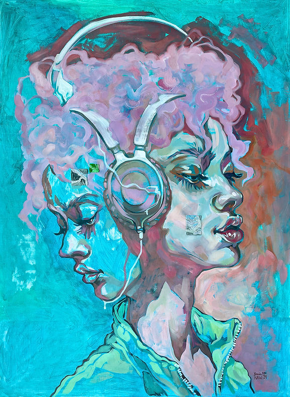Usually, I paint real people, but for this series of artworks, I had to find an artificial muse. A figure that never existed in the flesh, only in binary code. So I asked AI to create me models for these paintings.